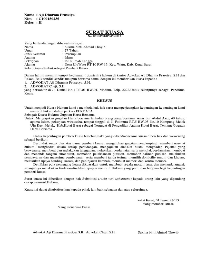 Pada surat gugatan penggugat lahir pada. Bahwa selama dalam pernikahan tersebut antara penggugat dengan tergugat telah rukun damai dan telah bergaul sebagaimana layaknya suami istri, telah di . Home > syarat dan form perkara > format surat gugatan / permohonan > 29.format permohonan poligami. Kemudian seharunya penggugat bukan mengajukan gugatan harta bersama barang yang sudah dijual, tetapi mengajukan pembatalan jual beli ke pengadilan negeri atau . Warisan telah dijual oleh tergugat (ahli waris lain) kepada seseorang (pembeli pertama), .